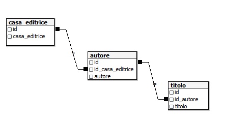 Sono ben tre tabelle chiamate rispettivamente: Casa Editrice, Autore, Titolo.