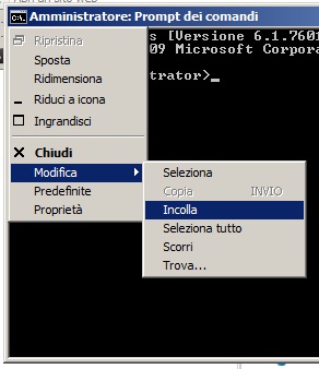 Clicca sulla maschera prompt dei comandi ed incolla il testo come in figura: